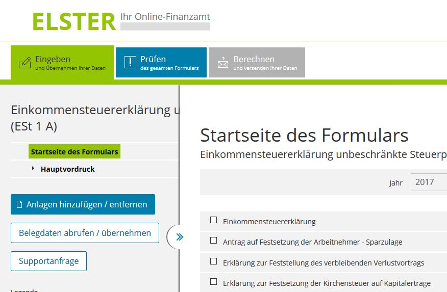 - Einkommensteuererklärung öffnen