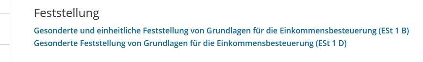 Sie loggen sich in Ihr Benutzerkonto bei Mein ELSTER ein - alle Formulare - Feststellungen - gesonderte und einheitliche Feststellung - Anlagenauswahl.