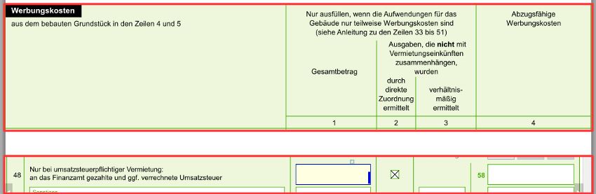 ich habe ein Frage bezüglich der Anlage V, Zeile 48 (Nur bei umsatzsteuerpflichtiger Vermietung).